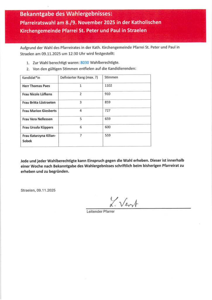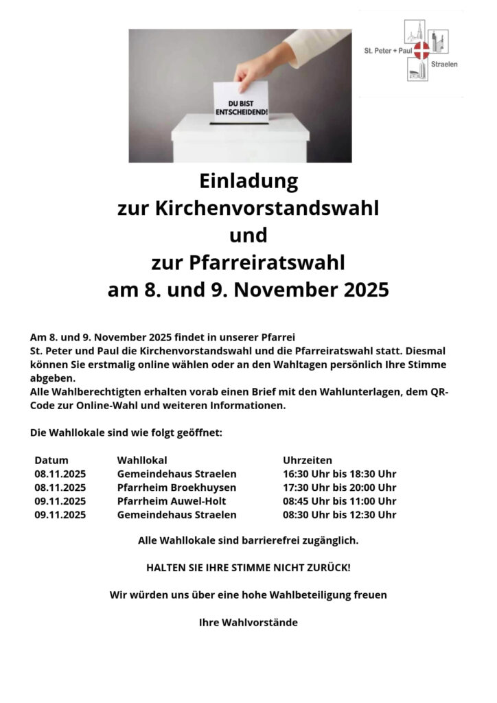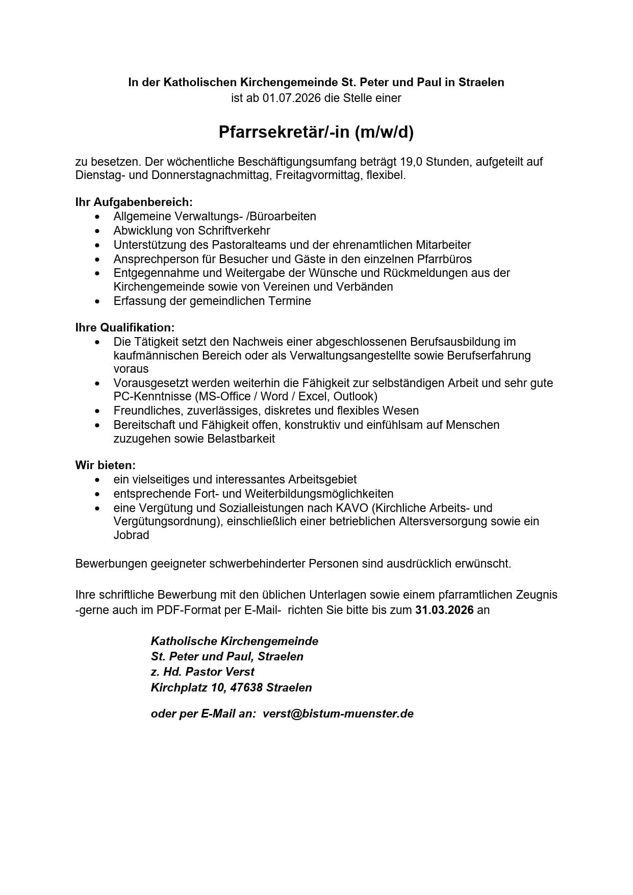 Herzlich Willkommen auf der Homepage der Pfarrei St. Peter und Paul in Straelen und den Gemeinden St. Georg in Auwel-Holt und St. Cornelius in Broekhuysen.